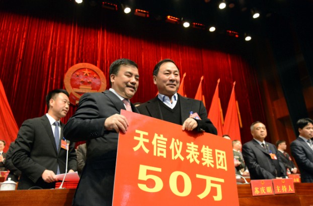 本網訊:2014年2月25日,蒼南縣兩會召開當天,蒼南縣“我愛我家、五水共治”首場捐資儀式在縣人民大會堂舉行。會議呼吁大家聚合力,強措施,治五水,讓蒼南的天更藍、山更綠、水更清。 五水共治,各企業家勇擔排頭兵。公司總裁范叔沙作為縣人大代表和民營企業家代表公司現場捐贈50萬元,為建設山青水秀家鄉貢獻了一份力量。